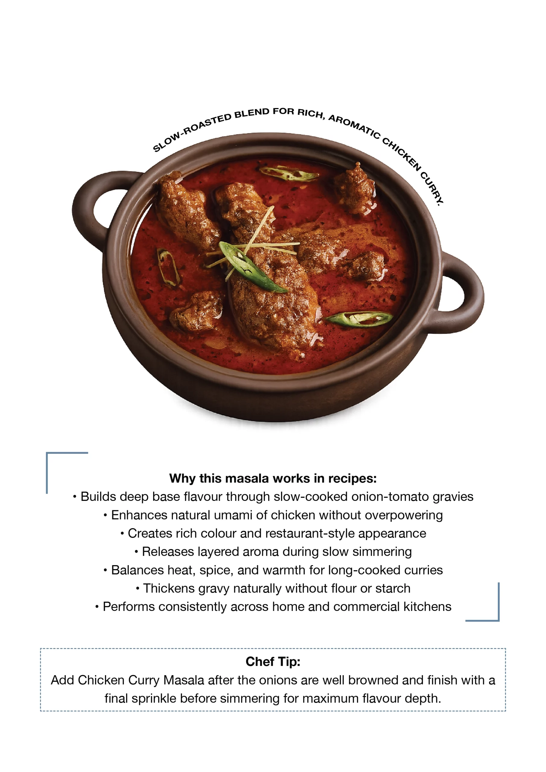 Excellent for chicken curries, tikkas, grills, marinades and homestyle gravies.
