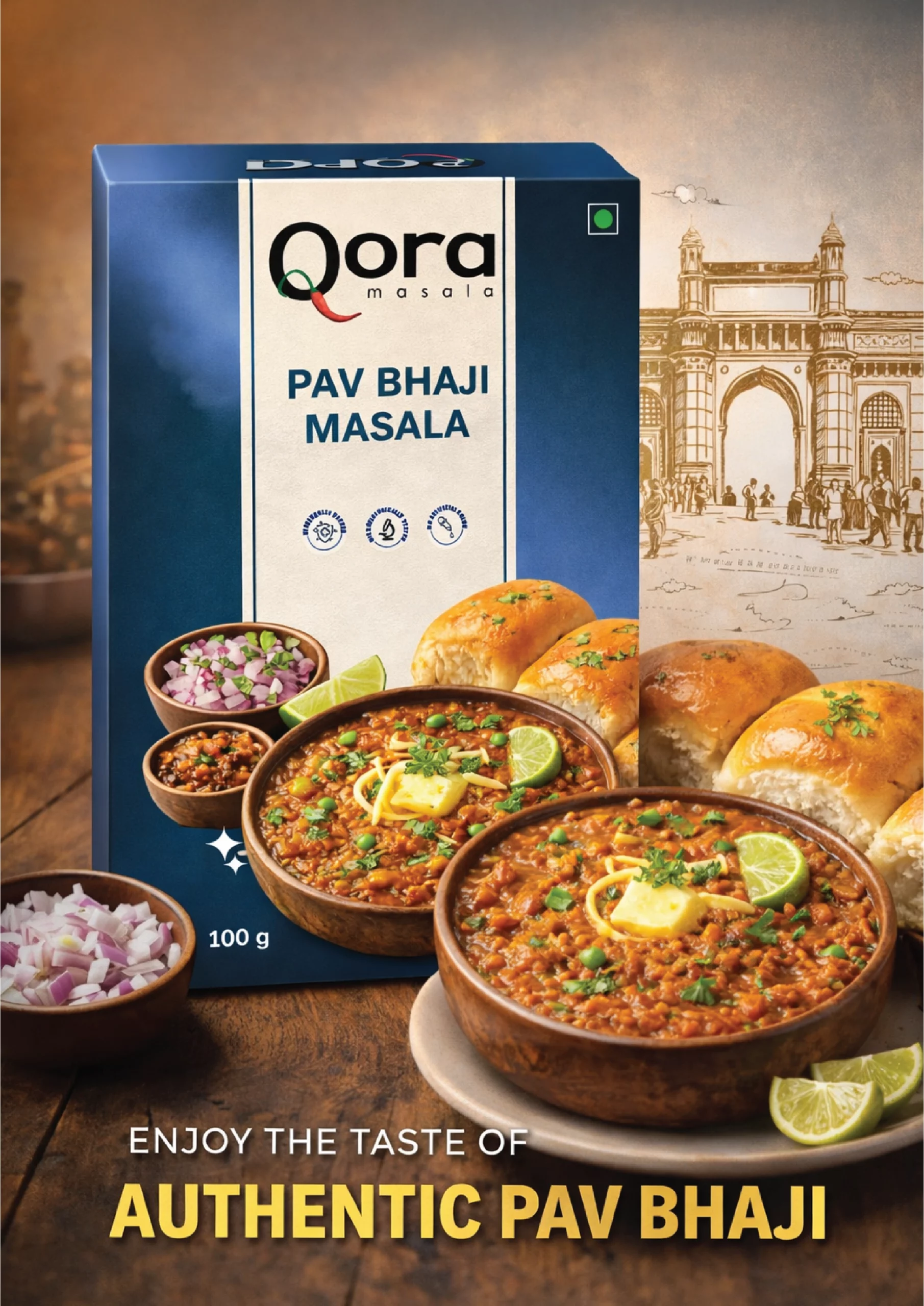 Qora’s Pav Bhaji Masala captures the unmistakable aroma of Mumbai’s favourite street food. A lively mix of roasted spices, it creates a bhaji that is rich, buttery and bursting with flavour—the true taste of the Indian street experience.