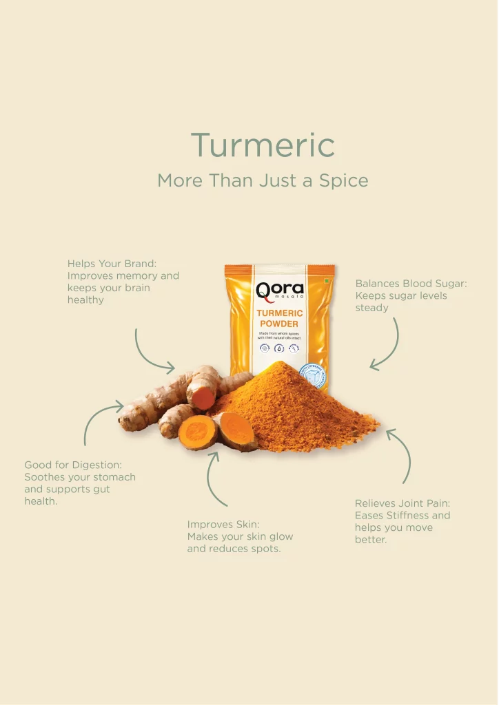 Qora’s Rajapuri Turmeric Powder is sourced from the finest turmeric-growing regions, known for their high curcumin content and deep golden colour. Its warm, earthy aroma and natural brightness elevate both flavour and appearance. Clean, pure and finely milled, it embodies the highest standards of Indian turmeric.